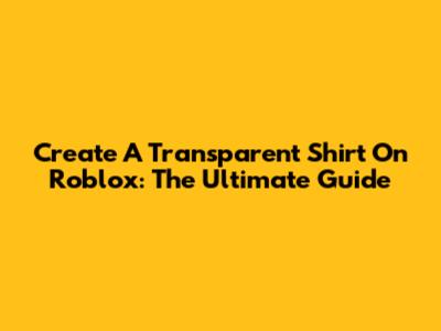 Create A Transparent Shirt On Roblox: The Ultimate Guide
