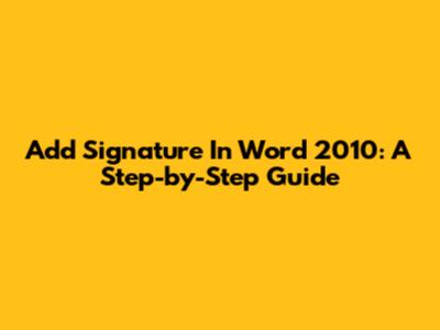 Add Signature In Word 2010: A Step-by-Step Guide