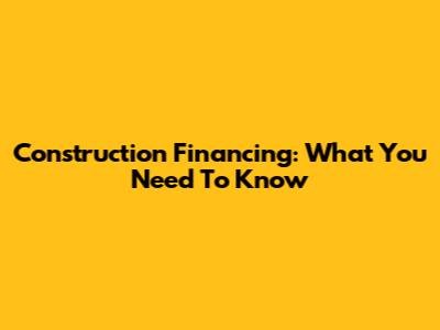 Construction Financing: What You Need To Know
