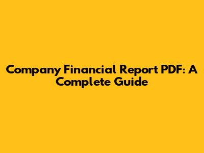 Company Financial Report PDF: A Complete Guide