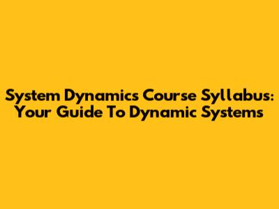 System Dynamics Course Syllabus: Your Guide To Dynamic Systems