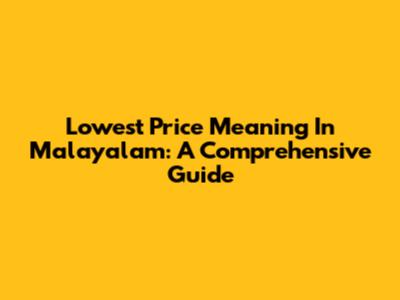 Lowest Price Meaning In Malayalam: A Comprehensive Guide