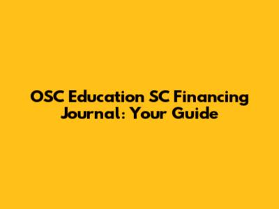 OSC Education SC Financing Journal: Your Guide