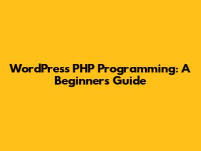 WordPress PHP Programming: A Beginner's Guide