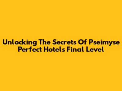 Unlocking The Secrets Of Pseimyse Perfect Hotel's Final Level