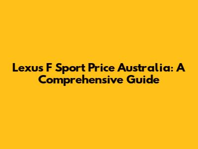 Lexus F Sport Price Australia: A Comprehensive Guide
