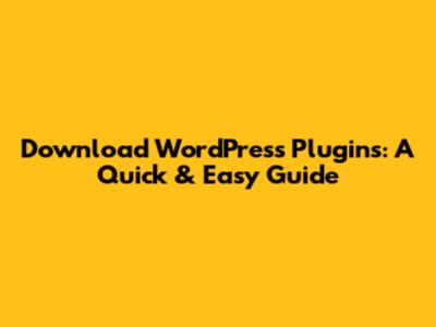 Download WordPress Plugins: A Quick & Easy Guide