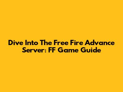 Dive Into The Free Fire Advance Server: FF Game Guide