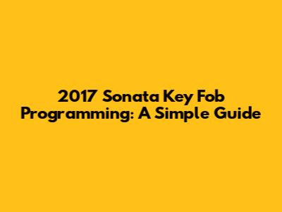 2017 Sonata Key Fob Programming: A Simple Guide
