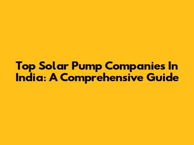 Top Solar Pump Companies In India: A Comprehensive Guide