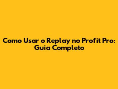 Passo a Passo: Como Acessar e Configurar o Replay no Profit Pro