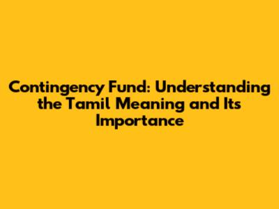 Contingency Fund: Tamil Translation & Cultural Significance