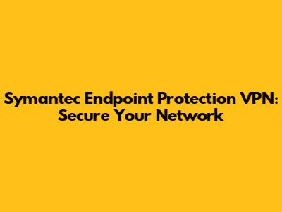 Symantec Endpoint Protection VPN: Secure Your Network