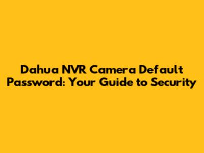 Understanding Dahua NVR Default Passwords