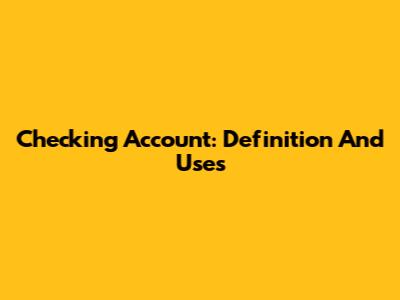 Checking Account: Definition And Uses