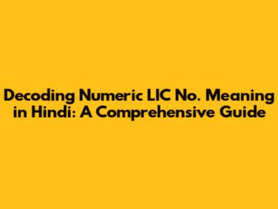 Hey everyone, let's dive into the world of Life Insurance Corporation (LIC) and unravel the mystery behind those seemingly complex numeric policy numbers! Specifically, we're going to explore the numeric LIC policy number meaning in Hindi. Understanding this can empower you to better manage your policies, access information quickly, and have a solid grasp on what your policy entails. Forget the confusion, guys; we're breaking it down in a way that's easy to understand. So, grab your chai, get comfy, and let’s get started. We’ll cover everything from the basic structure of the number to the specific details it reveals about your policy.