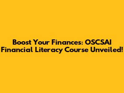 Boost Your Finances: OSCSAI Financial Literacy Course Unveiled!