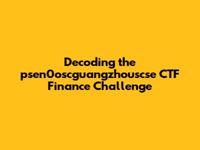 Hey guys! Ever stumbled upon a Capture The Flag (CTF) challenge that just seemed like a cryptic puzzle wrapped in an enigma? Well, the psen0oscguangzhouscse CTF finance challenge might just be one of those! Let's dive deep into dissecting this challenge, understanding its intricacies, and figuring out how to crack it. Get ready for a thrilling ride into the world of cybersecurity finance!