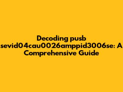 First off, it's essential to recognize that pusb sevid04cau0026amppid3006se isn't a standard word or acronym. It's likely a combination of several identifiers mashed together. Let's dissect it piece by piece: