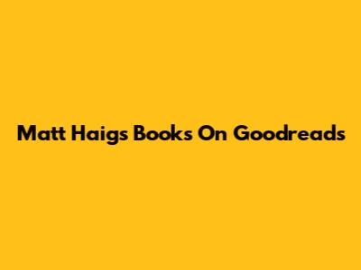 Matt Haig's Books On Goodreads