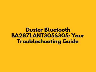 Troubleshooting Steps for the Duster Bluetooth BA287LANT305S305