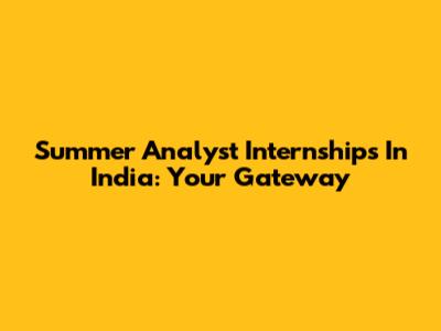 Summer Analyst Internships In India: Your Gateway