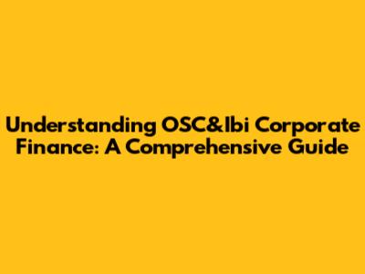 Understanding OSC&Ibi Corporate Finance: A Comprehensive Guide