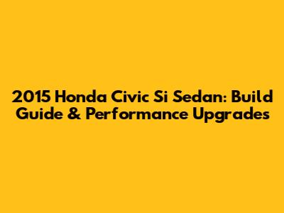 2015 Honda Civic Si Sedan: Build Guide & Performance Upgrades