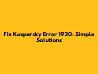 Fix Kaspersky Error 1920: Simple Solutions