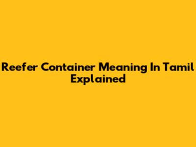 Reefer Container Meaning In Tamil Explained