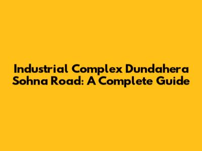 Industrial Complex Dundahera Sohna Road: A Complete Guide