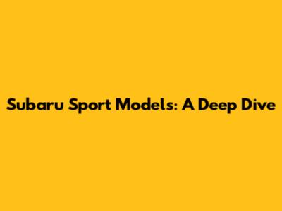 Subaru Sport Models: A Deep Dive