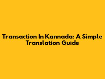 Transaction In Kannada: A Simple Translation Guide