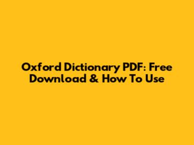 Oxford Dictionary PDF: Free Download & How To Use