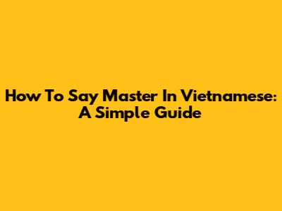 How To Say Master In Vietnamese: A Simple Guide