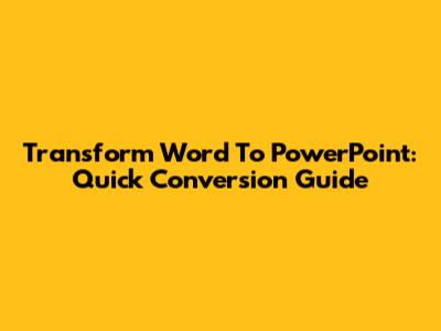 Transform Word To PowerPoint: Quick Conversion Guide