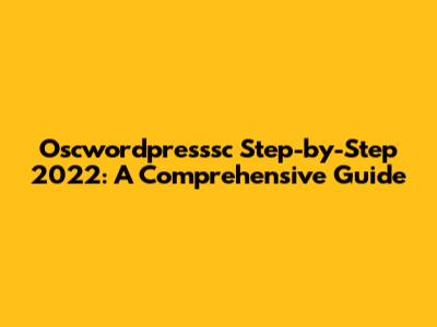 Oscwordpresssc Step-by-Step 2022: A Comprehensive Guide