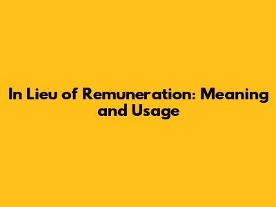 Decoding "In Lieu of Remuneration"