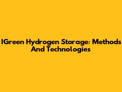 IGreen Hydrogen Storage: Methods And Technologies