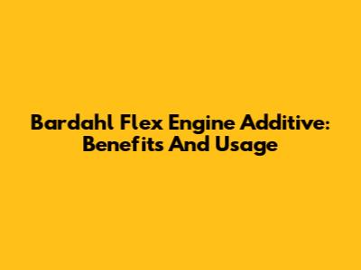 Bardahl Flex Engine Additive: Benefits And Usage
