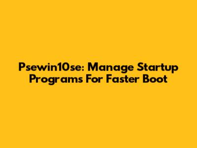Psewin10se: Manage Startup Programs For Faster Boot