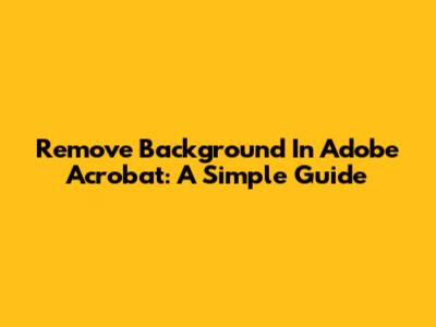 Remove Background In Adobe Acrobat: A Simple Guide
