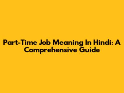 Part-Time Job Meaning In Hindi: A Comprehensive Guide