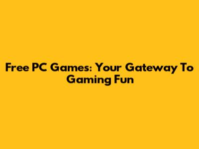 Free PC Games: Your Gateway To Gaming Fun