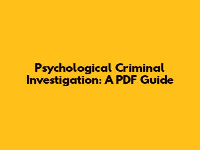 Psychological Criminal Investigation: A PDF Guide