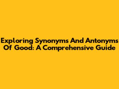 Exploring Synonyms And Antonyms Of 'Good': A Comprehensive Guide
