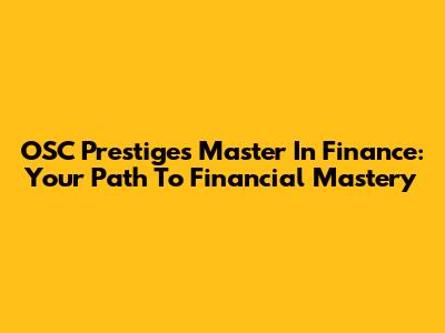 OSC Prestige's Master In Finance: Your Path To Financial Mastery
