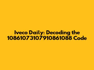The Iveco Daily is a popular choice for businesses needing a reliable and versatile commercial vehicle. Understanding the specific models and their features can be crucial for maintenance, repairs, and even purchasing decisions. The code "10861073107910861088" might seem like a jumble of numbers, but it likely refers to a specific part number, model identifier, or some other internal code used by Iveco. Let's dive into how to decode such codes and what they might signify for your Iveco Daily.