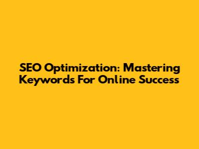 SEO Optimization: Mastering Keywords For Online Success