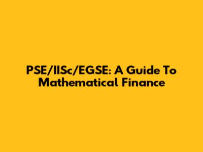 PSE/IISc/EGSE: A Guide To Mathematical Finance